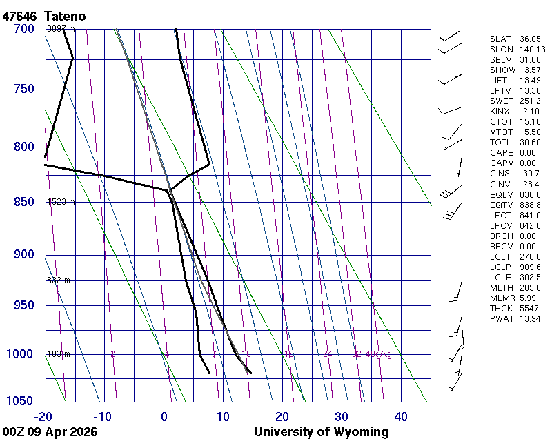Precipitable water [mm] for entire sounding: 13.94