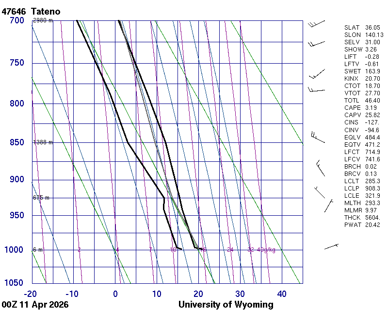 Precipitable water [mm] for entire sounding: 16.15