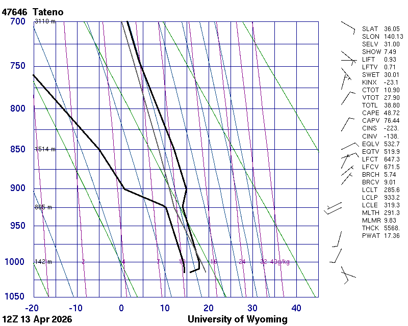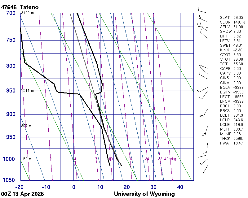 Precipitable water [mm] for entire sounding: 17.06