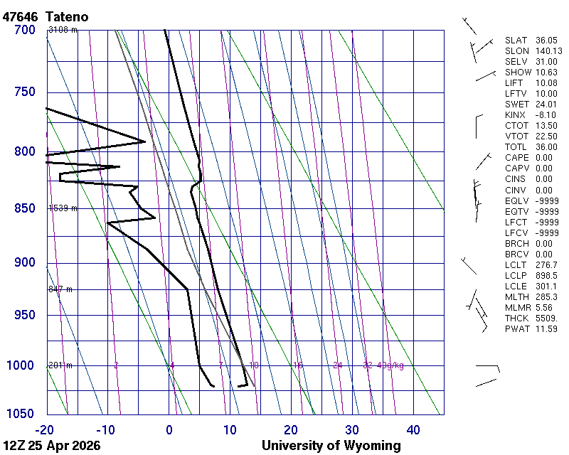 Precipitable water [mm] for entire sounding: 21.29