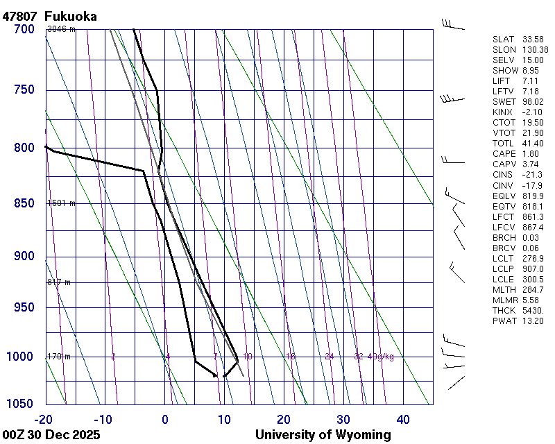 Precipitable water [mm] for entire sounding: 13.20
