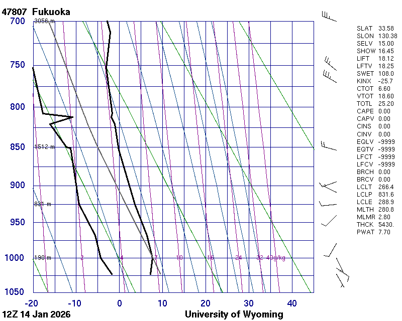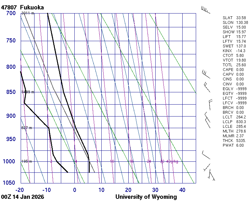 Precipitable water [mm] for entire sounding: 5.41