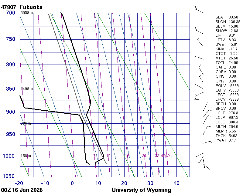 Precipitable water [mm] for entire sounding: 9.17