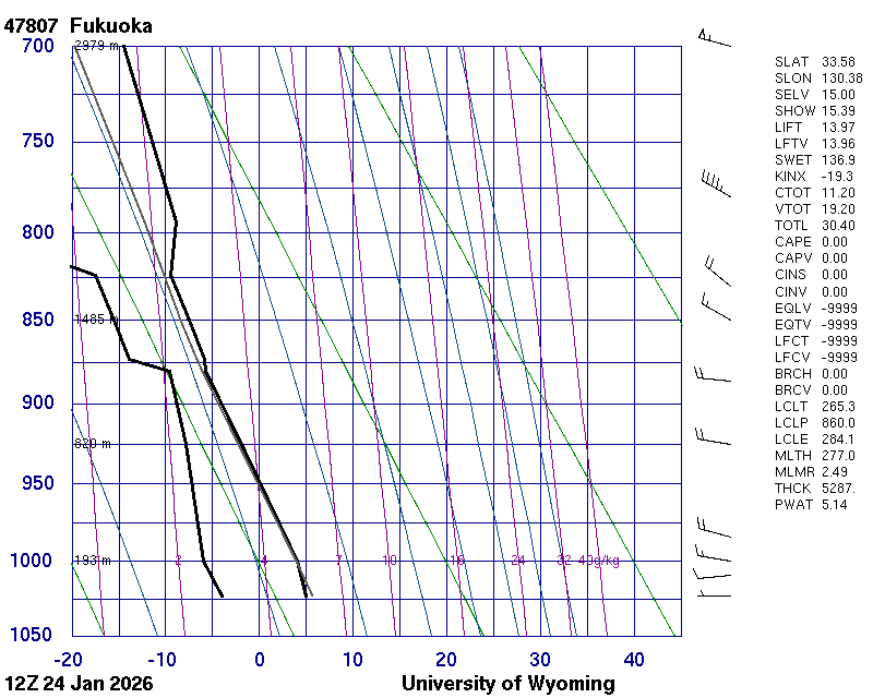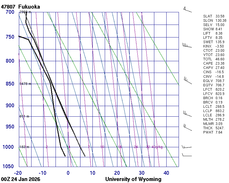 Precipitable water [mm] for entire sounding: 7.64