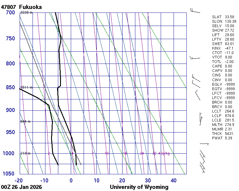 Precipitable water [mm] for entire sounding: 5.39