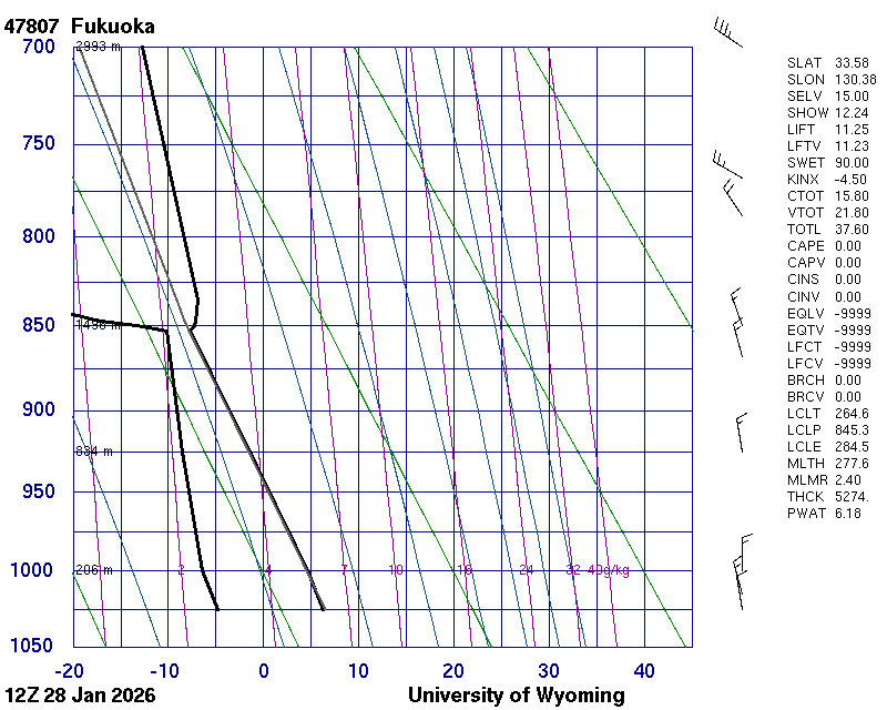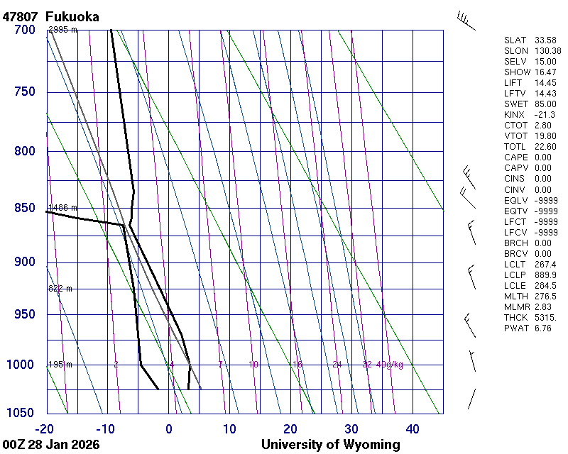 Precipitable water [mm] for entire sounding: 6.18