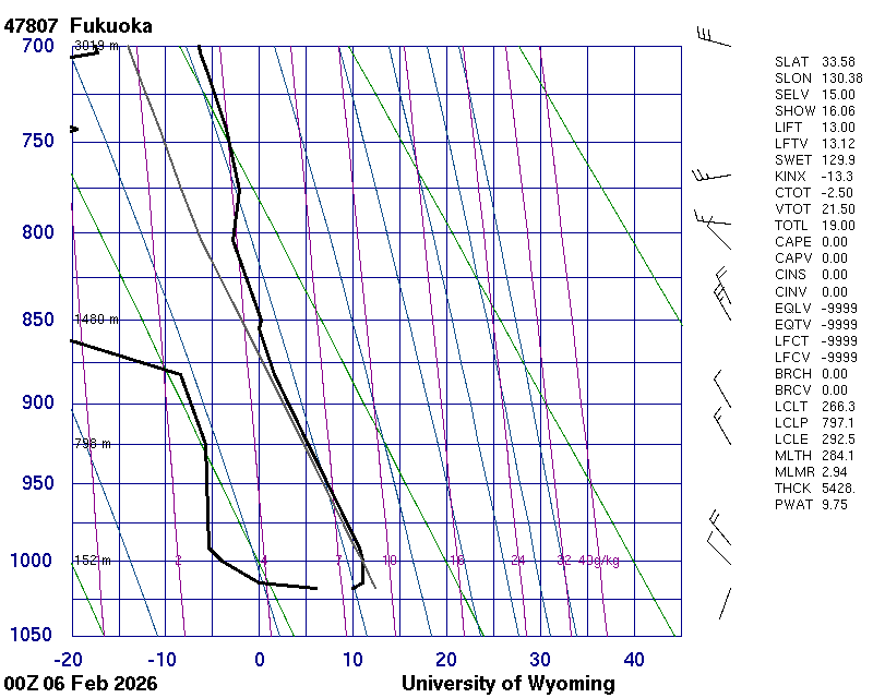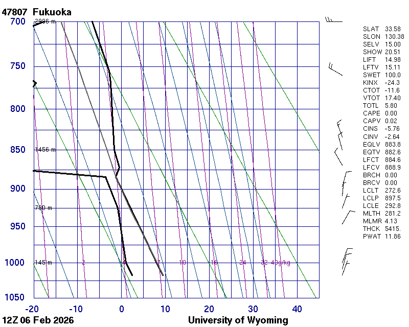 Precipitable water [mm] for entire sounding: 11.86