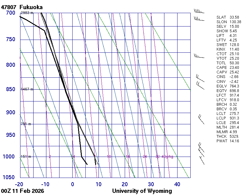 Precipitable water [mm] for entire sounding: 14.16