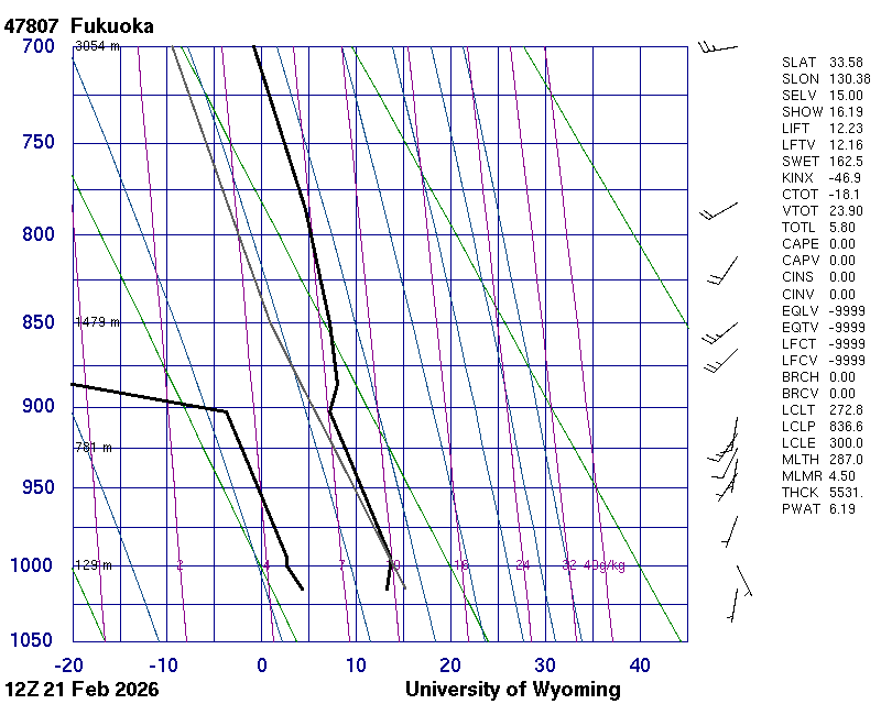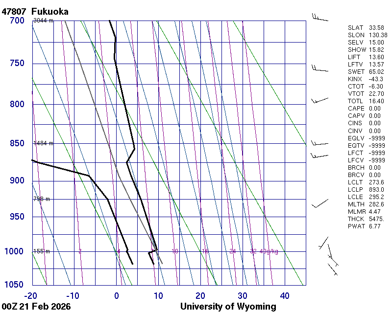 Precipitable water [mm] for entire sounding: 6.19