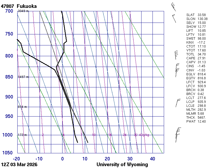 Precipitable water [mm] for entire sounding: 13.19