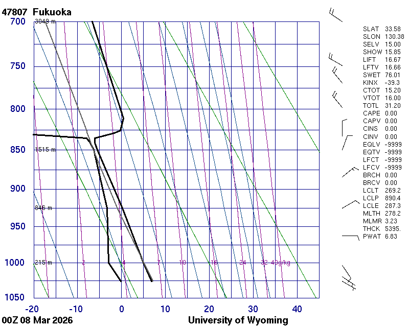 Precipitable water [mm] for entire sounding: 6.60