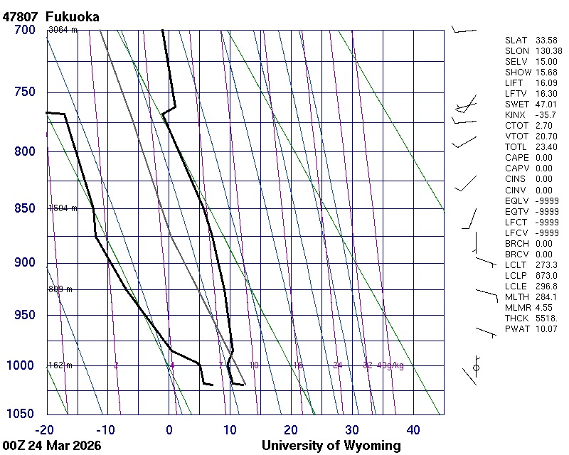 Precipitable water [mm] for entire sounding: 4.67
