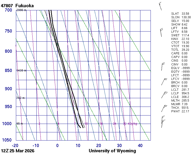 Precipitable water [mm] for entire sounding: 22.17