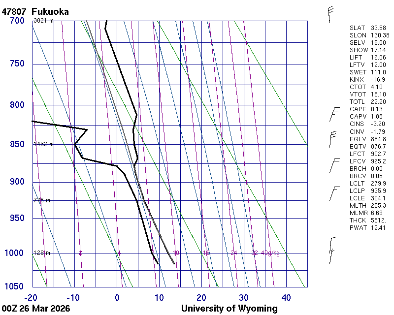 Precipitable water [mm] for entire sounding: 12.41