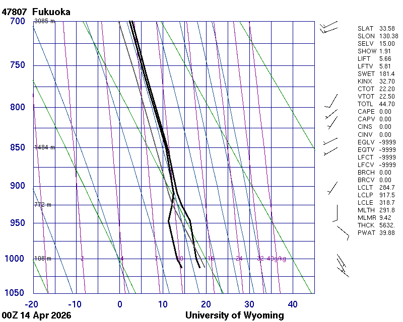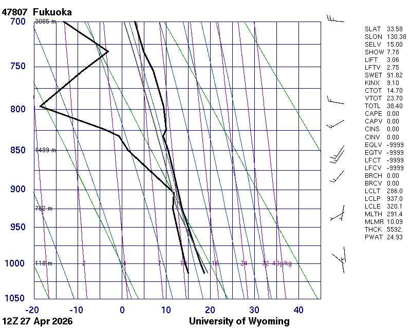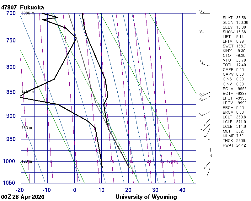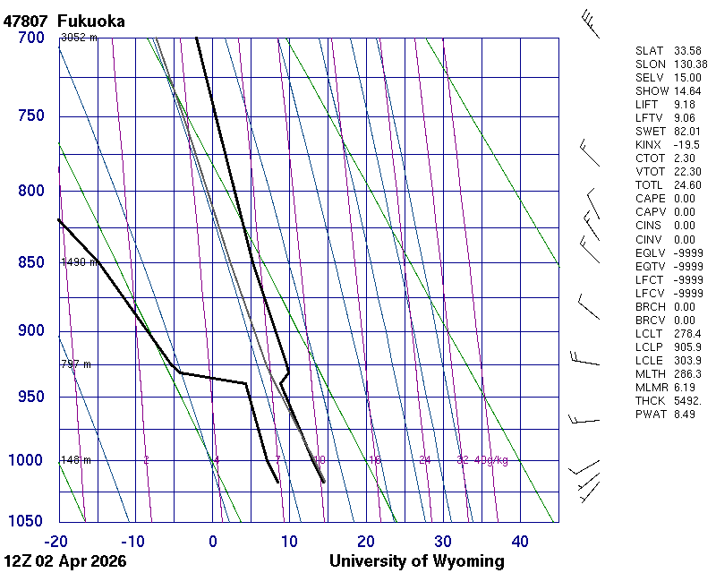PRES HGHT TEMP DWPT RELH MIXR DRCT SKNT THTA THTE THTV