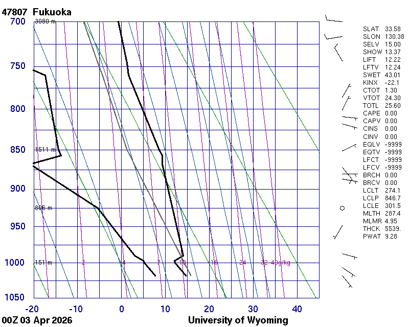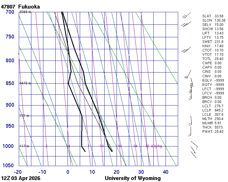 Precipitable water [mm] for entire sounding: 9.28