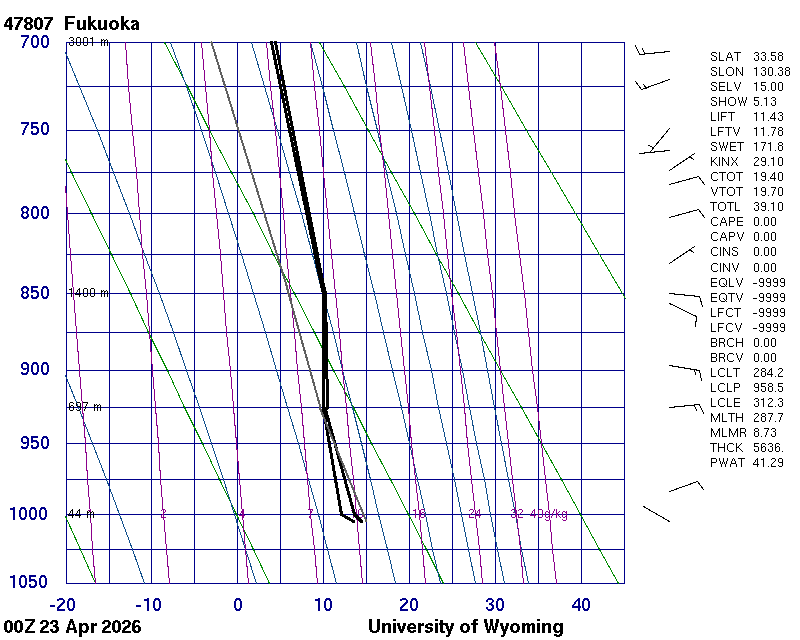 Precipitable water [mm] for entire sounding: 21.12