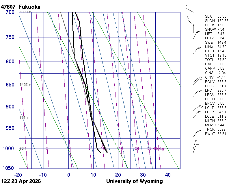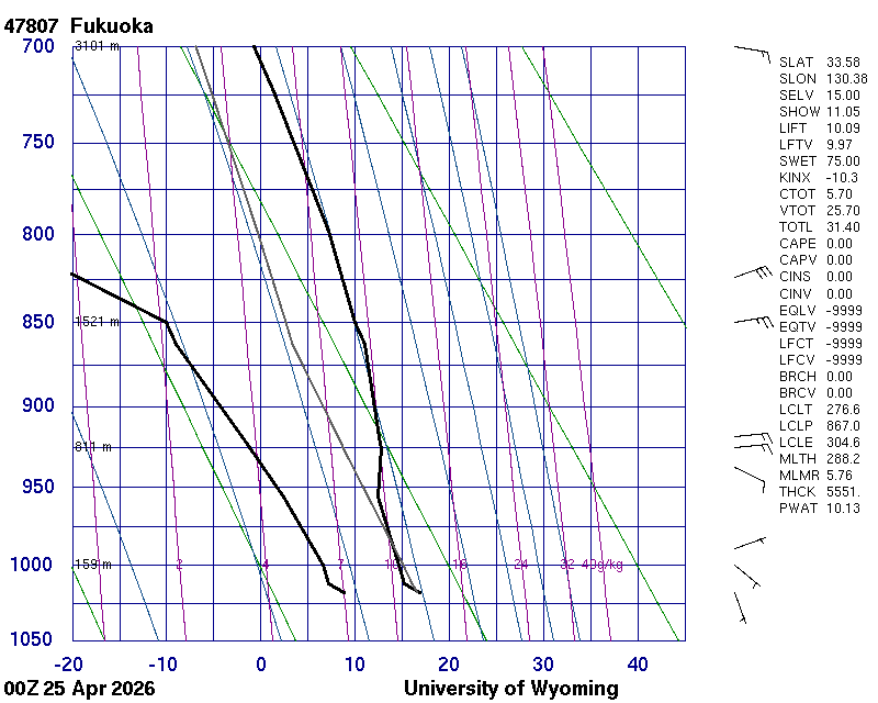 Precipitable water [mm] for entire sounding: 10.13