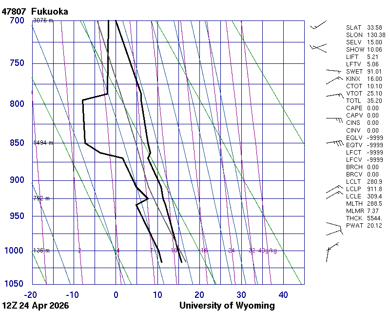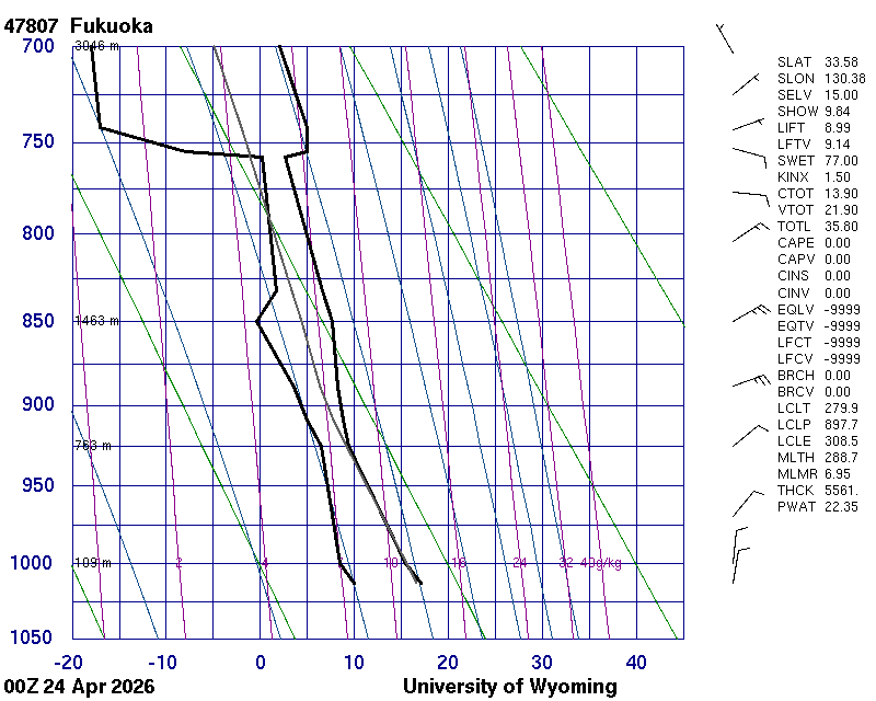 Precipitable water [mm] for entire sounding: 32.51