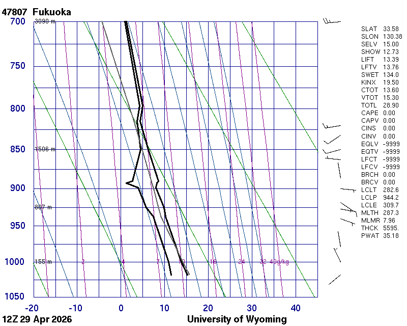 Precipitable water [mm] for entire sounding: 26.40